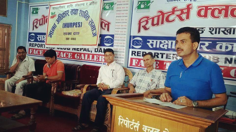 मानव अधिकार तथा शान्ति समाज दाङ शाखाले जिल्लामा सुरक्षा संवेदनशीलताप्रति चिन्ता व्यक्त गरेको छ । समाज दाङ शाखाको आइतबार बसेको शान्ति सुरक्षाको संवेदनशीलताप्रति राज्य गम्भीर बन्न आग्रह गरिएको छ ।  श्रृखलाबद्ध हत्या, रहस्यमय मृत्यु, अपहरण, फिरौती, सामुहिक बलत्कारका घटना हुनु मानव अधिकारको ठाडो उल्लंघन भएको भन्दै तत्काल शान्ति सुरक्षाको प्रत्याभूति दिलाउन राज्यसग शान्ति समाज दाङ शाखाले आग्रह गरेको छ ।