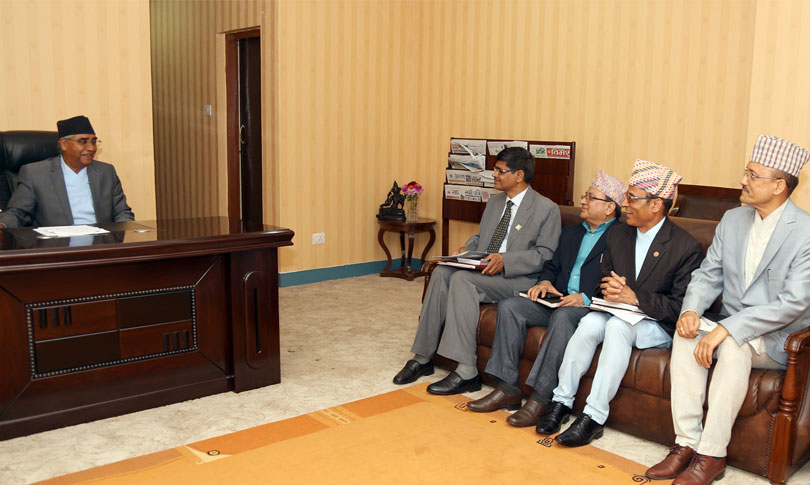 प्रधानमन्त्रीलाई भेट्न आयोगका पदाधिकारीहरु सिंहदरबार पुगेका थिए । भेटमा उपप्रधान एवं परराष्ट्रमन्त्री कृष्णबहादुर महरा, गृहमन्त्री जनादर्न शर्मा र अर्थमन्त्री ज्ञानेन्द्रबहादुर कार्की पनि सहभागी हुनुहुन्थ्यो ।
