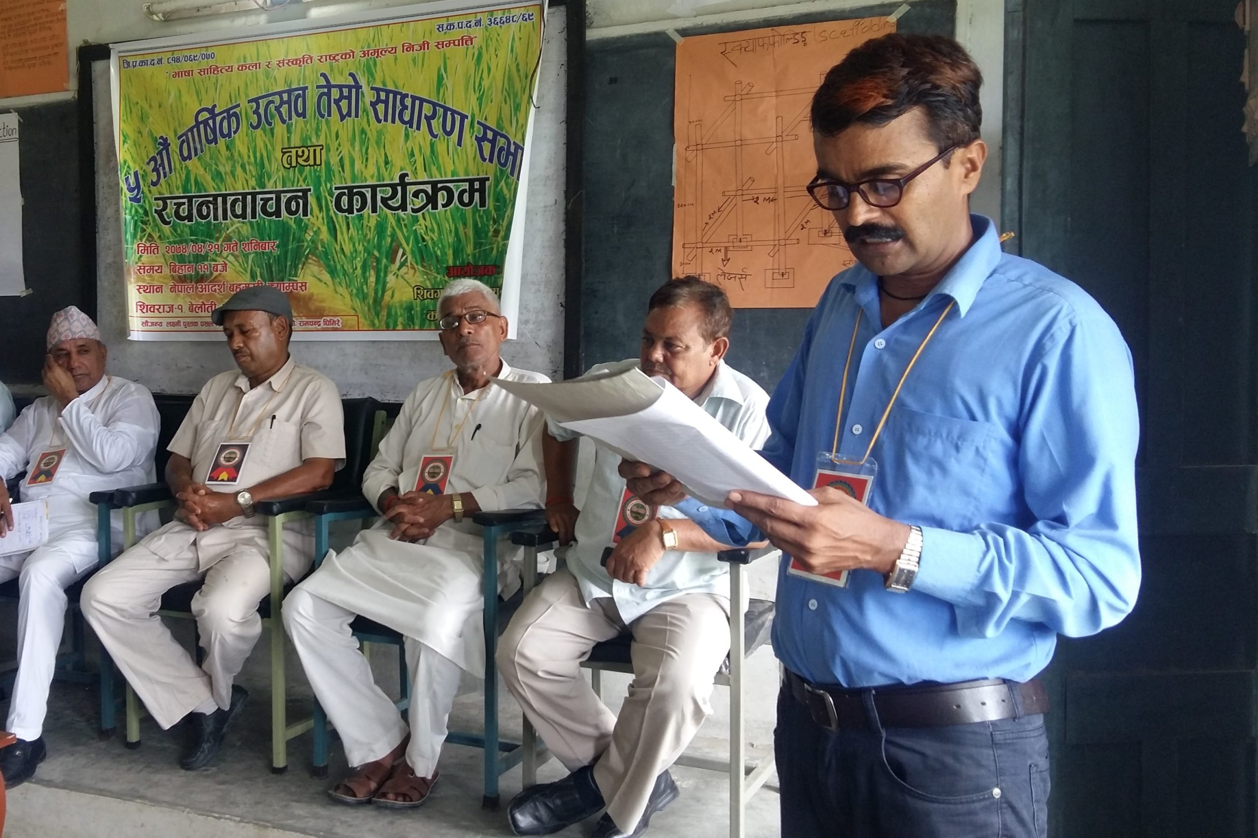 साधारण सभाले साहित्य संगमको उपाध्यक्षमा श्रीधर आचार्य, सचिवमा हेमराज शर्मा, कोषाध्यक्ष रामप्रकाश चौधरी तथा सदस्यहरुमा भानुभक्त वराल, जुना वुढाथोकी र सरिता बलामीलाई सर्वसम्मत चयन गरेको छ ।