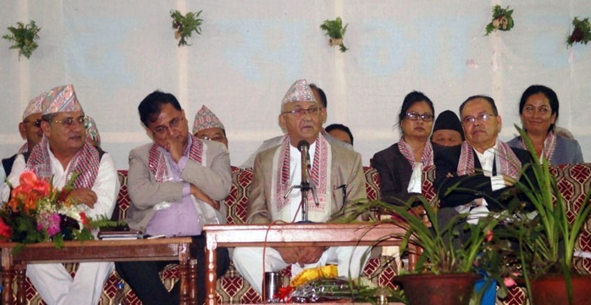 नेकपा (एमाले) भद्रपुर नगर कमिटीले बुधबार यहाँ आयोजना गरेको अगुवा कार्यकर्ता भेलालाई सम्बोधन गर्दै पूर्व प्रधानमन्त्रीसमेत रहेका ओलीले संविधान कार्यान्वयन र प्राप्त उपलब्धिलाई संस्थागत गर्न निर्वाचन निर्धा्रित समयमै हुनुपर्ने बताए ।