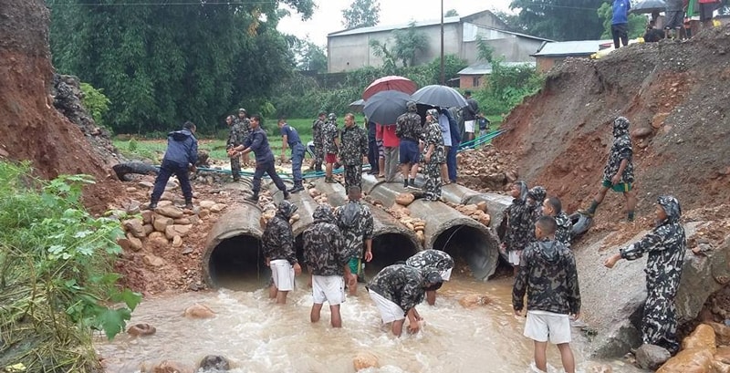 सडक खण्ड अन्तरगत तुलसीपुर ७ मोतीपुरमा सडक भासिदा तीन दिन देखि यातायात अबरुद्ध रहेको थियो । भासिएको सडकलाई सुचारु गर्न नेपाली सेना, नेपाल प्रहरी, शसस्त्र प्रहरी र सडक डिभिजन कार्यालयको टोलीले मर्मत थालेको थियो ।