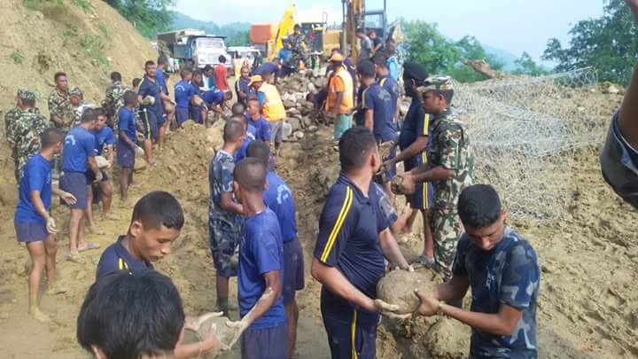 एक्साभेटरको प्रयोग गरी सडक खोलाउने प्रयास हुदै आएपनि अबिरल वर्षाका कारण लगातार गईरहेको पहिरोले सडक पन्छाउन गाह्रो भईरहेको थियो । लगातारको पहिरोले करीब ६० मीटर पीच सडक भांसिएपछि पुर्वपश्चिमको आवागमन साउन २७ गते गतेदेखि पुर्ण रुपमा ठप्प बनेको थियो ।