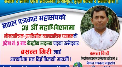 मायादेवी अनलाइन, कपिलवस्तु, २ भाद्र । नेपाल पत्रकार महासंघका पुर्व कपिलवस्तु शाखा अध्यक्ष बसन्त गिरी