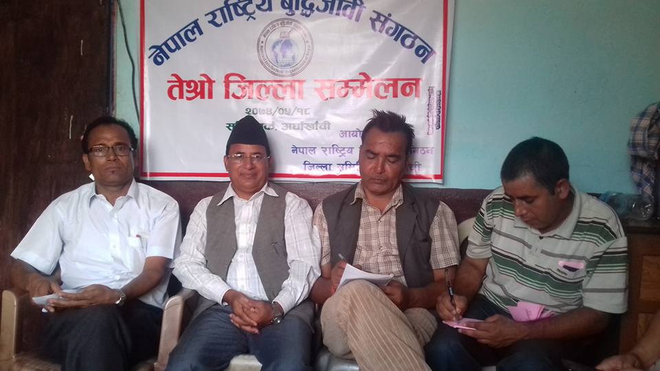 नेपाल राष्ट्रिय वुद्धिजिवी संगठन अर्घाखाँचीको अध्यक्षमा माधव खनाल निर्वाचित हुनु भएको छ । संगठनको तेस्रो सम्मेलनले खनालको अध्यक्षतामा २५ सदस्सीय कमिटि निर्वाचित गरेको हो । जसको उपाध्यक्षमा खिम प्रसाद दोमासे, जगनाथ गौतम, रमा खनाल , सचिवमा वलवहादुर रायमाझी, सहसचिवमा टोपलाल पाण्डे, कोषाध्यक्षमा सिता श्रीपाली सुनार रहनु भएको छ । त्यसै गरि अन्य सदस्यमा रहनु भएको छ ।