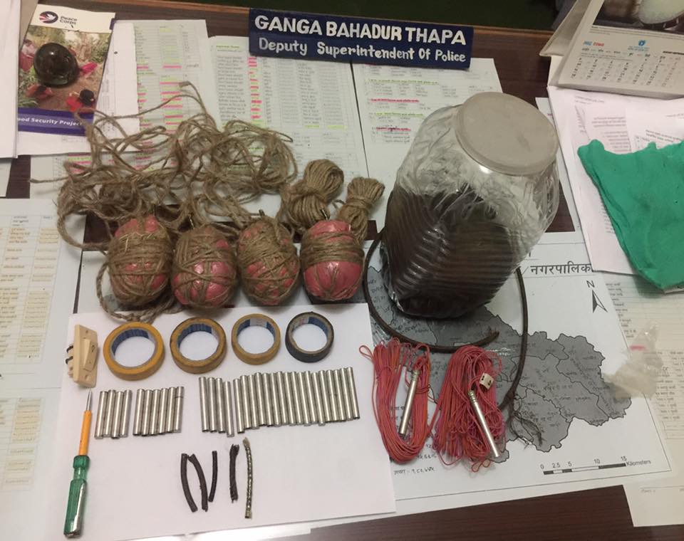 श्रीसको साथबाट ३३ थान एक्सपोलसिभ डेटोनेटर, चार थान सुतती बम, एक किलोग्राम बारुद र सेफ्टिफ्युज लगायतका अबैध बिस्फोटक पदार्थ प्रहरी बरामद गरेको जिल्ला प्रहरी कार्यालय गुल्मीका प्रहरी नायव उपरिक्षक गंगा बहादुर थापाले जानकारी दिए । श्रीस लु ३२ प ६६०३ नम्बरको मोटरसाइकलमा सवार थिए । प्रहरीले रेसुंगा नगरपालिका २ को प्रहरी चेकप्वाइन्टमा चेकजाँज गरेको थियो । बिस्फोटक पदार्थ र श्रीस प्रहरी नियन्त्रणमा छन् । साथै थप बिषयमा अनुसन्धान समेत शुरु भइरहेको प्रहरीले जनाएको छ ।
