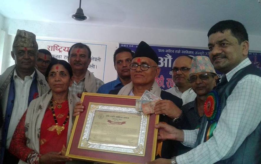 उक्त अवसरमा नेपाली भाषा संस्कृतिमा योगदान गरेको भन्दै कपिलवस्तुका वरिष्ठ कवि ऋषिकेशव भारद्धाजलाई दधि स्मृति छन्द श्रीबृद्धि साहित्य पुरस्कार स्वरुप नगद ५ हजार ५ सय ५५ सहित ताम्रपत्रले सम्मान गरिएको छ ।