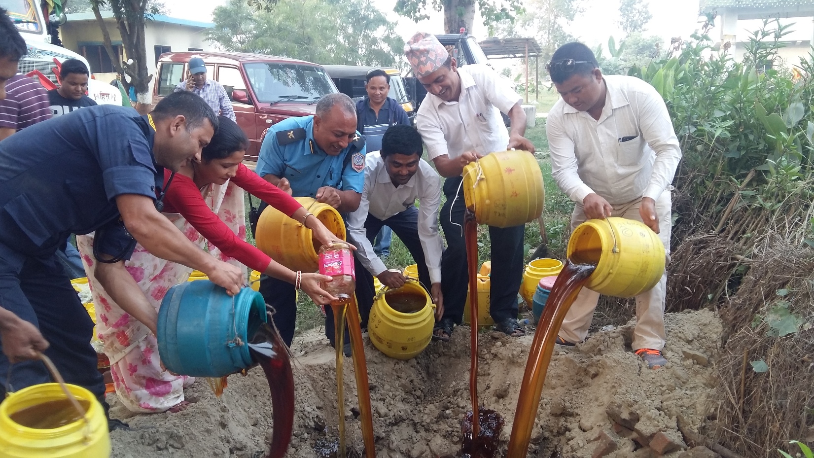 चन्द्रौटा आसपासको क्षेत्रबाट बरामद गरिएको चिनीबाट निर्मित नक्कली मह प्रहरीले बुधबार नष्ट गरेको छ । वडा प्रहरी कार्यालय चन्द्रौटाले पत्रकार सम्मेलन गरी प्रहरी परिसरमा खाल्डो खनी नक्कली मह नष्ट गरेको हो । विजयनगर गाउँपालिकाका अध्यक्ष गोपाल थापा, शिवराज नगरपालिकाकी उपप्रमुख शिवकुमारी थारु, इलाका प्रशासन कार्यालय चन्द्रौटाका शाखा अधिकृत जगदीश अर्याल, संचारकर्मी लगायतको उपस्थितिमा मह नष्ट गरिएको प्रहरी निरीक्षक झविन्द्र प्रसाद भट्टराईले जानकारी दिए ।