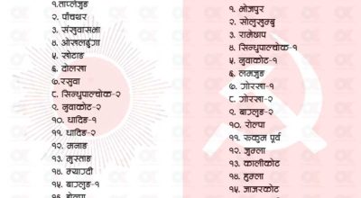 काठमाडौं, ३ कात्तिक । नेकपा एमाले र माओवादी केन्द्रले पहिलो चरणमा चुनाव हुने ३२ जिल्लाको