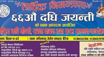 मायादेवी अनलाइन, कपिलवस्तु, २० असोज । दधिस्मृती साहित्य समाज कपिलवस्तुले आज राती काव्य सन्ध्या आयोजना