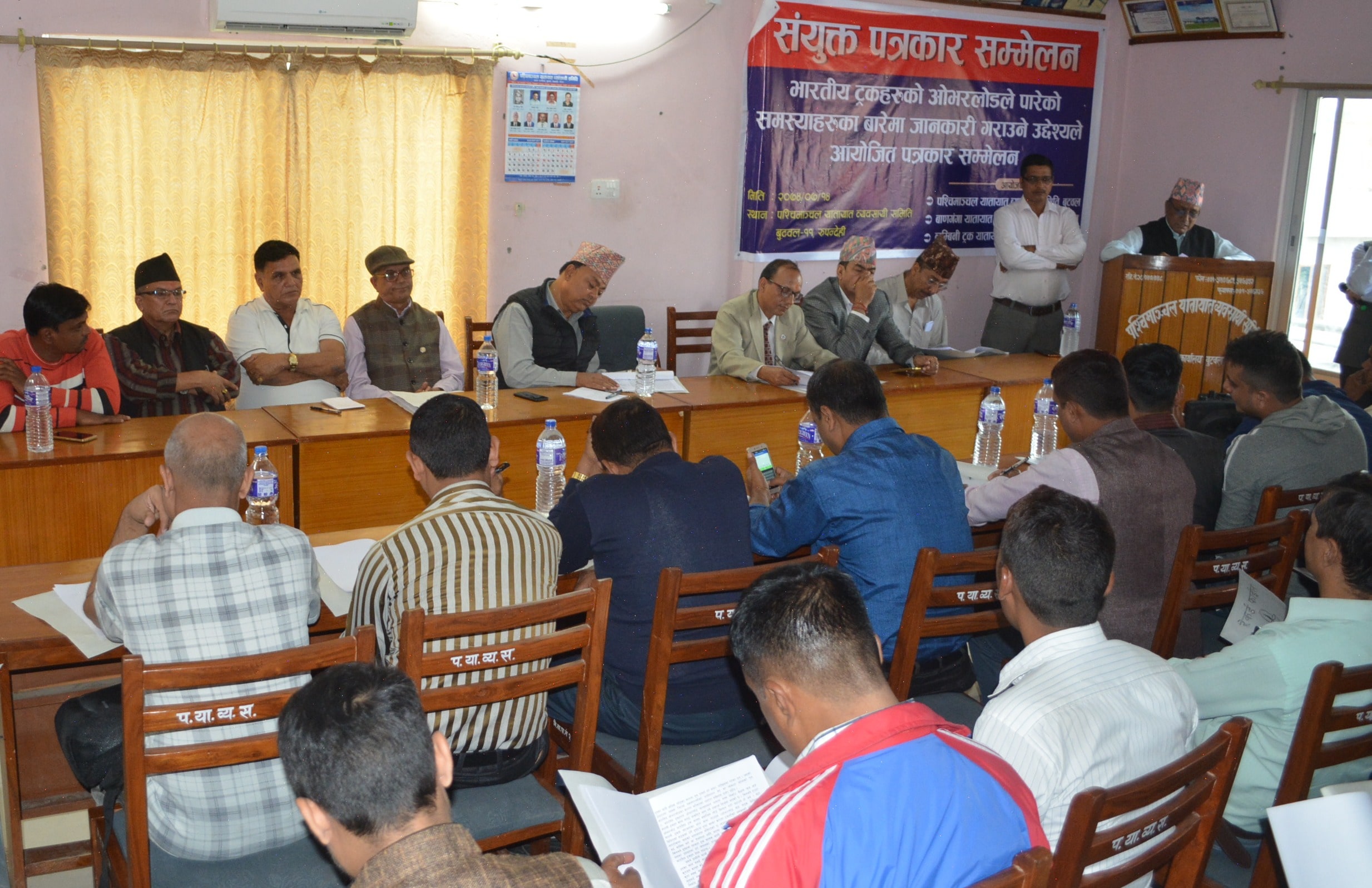 मंगलबार बुटवलमा पश्चिमाञ्चल, लुम्विनी ट्रक र बाणगंगा यातायात व्यवसायी समितिले संयुक्त पत्रकार सम्मेलन गर्दै पटक पटक भारवाहन कार्यविधि विपरीत गाडिहरु आइरहेको गुनासो गरे पनि प्रहरी, प्रशासन र भन्सार कुनै पनि निकायबाट सुनुवाई हुन नसकेको व्यवसायीहरुले बताका छन् ।
