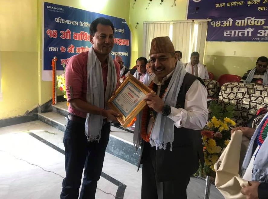 कार्यक्रममा सुनवलमै रहेको त्रिनेत्र टेर्डसका प्रोपराईटर एवं पेट्रोलियम व्यवसायी उषा बन्जाडे जिल्ला समन्वय समिति नवलपरासीको सदस्य पदमा निर्वाचित भएकोमा बन्जाडेलाई पनि सम्मान गरिएको छ । पश्चिमाञ्चल पेट्रोलियम डिलर्स एशोसिएसनका अध्यक्ष प्रेमनारायण न्यौपानेको अध्यक्षतामा बुटवलमा भएको साधारण सभा कार्यक्रममा नवलपरासीका यि दुईटा व्यक्तित्वलाई सम्मान गरिएको हो ।