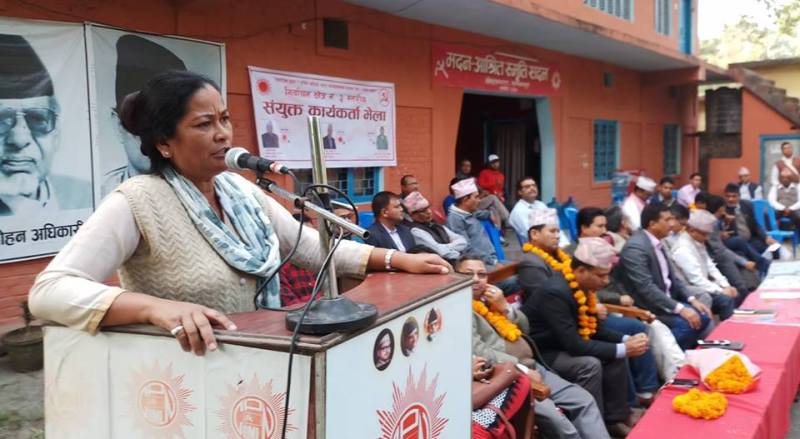 सर्वहारा वर्गको उत्थान र राष्ट्र निर्माणको अभिभारा गठबन्धनको काँधमा जिम्मेबारी थपिएको बताउदै उनले एकजुटका साथ युद्धस्तरमा चुनावमा होमिन आब्हान गरिन् । ३ को (क) बाट प्रदेश सभा सदस्यका उम्मेदवार प्रकास बहादुर रावलले छरिएर रहेका बाम घटक एकजुट हुँदा विकास हुने बताउदै एकजुट भएका कम्युनिष्ट उम्मेदवारलाई सघाउन आग्रह गरे ।