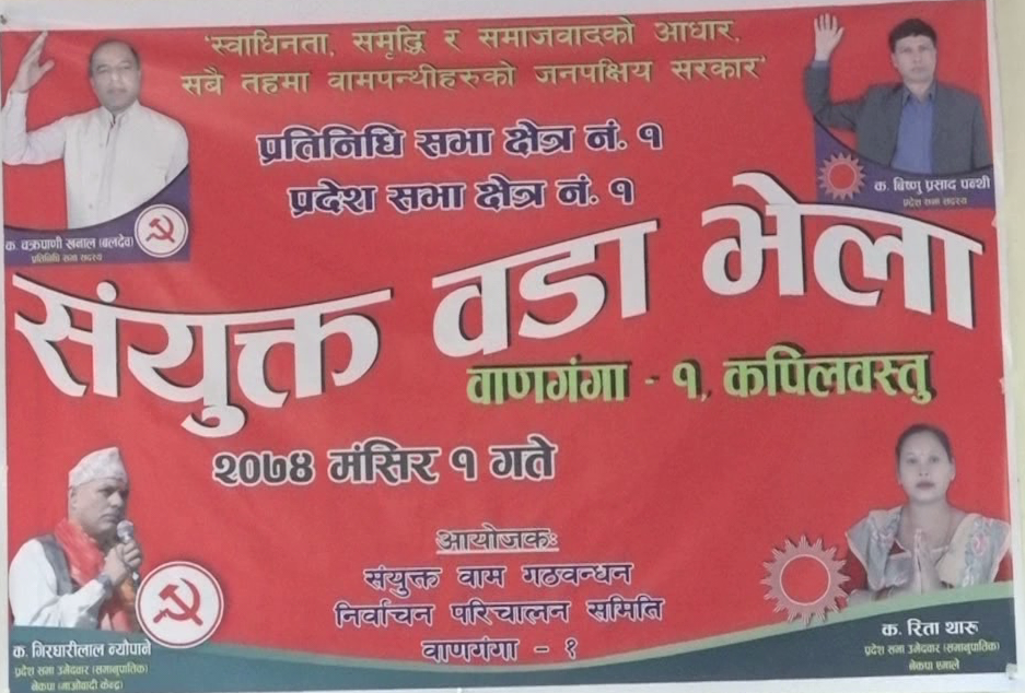 त्यस्तै प्रदेश सभाका उम्मेदवार विष्णु पन्थीले जनताको खुशीमा बामगठबन्धनको सरकार आवश्यकता रहेको बताउनुभयो । बामगठबन्धनका युवा उम्मेदवार विष्णु पन्थीले युवा देखि बृद्धासम्मका नागरिकलाई आवश्यकता अनुसारको व्यवस्था बाग गठबन्धनको सरकारले गरेको बताउनुभयो । उहाँले स्वदेशमै युवाहरुलाई उत्पादन र रोजगारी सिर्जना गर्दै आर्थिक विकास गर्ने बताउनुभयो । उम्मेदवार पन्थीले एमालेको मनमोहन अधिकारी नेतृत्वको सरकारले एक सयबाट शुरु गरेको बृद्ध भत्ता बामगठबन्धनको सरकारले ५ हजार पु¥याउने जानकारी दिनुभएको छ । बामगठबन्धनको शुक्रबार वाणगंगा नगरपालिकाको वडा नम्बर एक बैरिया र वडा नम्बर ११ ओदारीमा सम्पन्न संयुक्त कार्यकर्ता भेलामा उम्मेदवारले उक्त कुरा बोल्नु भएको थियो ।