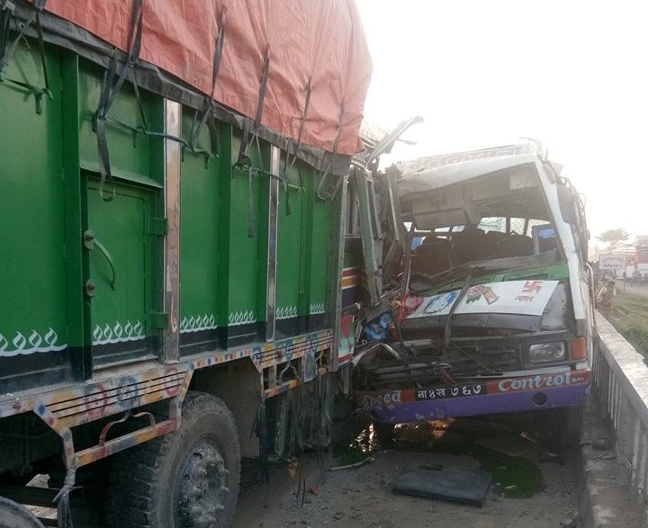 दुधराक्ष पुलमा बस र ट्रक ठोक्किदा २५ जना घाइते