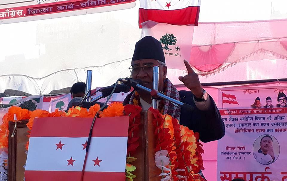 मंसिर २१ मा हुने प्रतिनिधि तथा प्रदेश सभाको निर्वाचनमा कांग्रेसले जितेमात्रै जनताको अधिकार सुनिश्चित हुने उहाँले बताउनु भयो। प्रधानमन्त्री देउवाले कांग्रेसले नजित्दा कांग्रेसकै नेतृत्वमा जारी भएको संविधानलाई च्यातेर कम्यु्निष्ट गठबन्धनले एक दलीय राष्ट्रपतीय प्रणाली लागू गर्ने भएकाले कांग्रेसलाई जिताउन आग्रह गर्नु भयो।