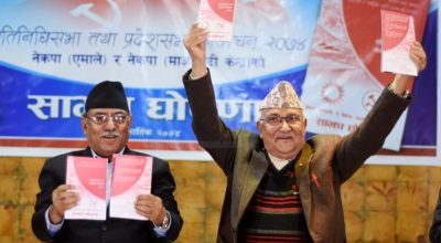 काठमाडौं, २१ कात्तिक एमाले अध्यक्ष केपी शर्मा ओली र माओवादी अध्यक्ष पुष्पकमल दाहालले दुई पार्टीको