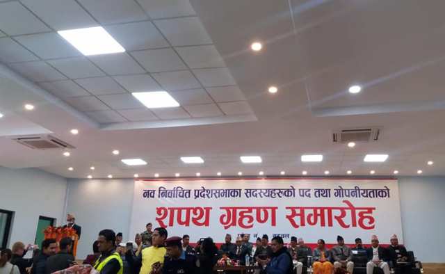 प्रदेश नम्बर ५ का सांसदहरुले सपथ लिए, दुई अनुपस्थित !