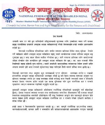 राष्ट्रिय सभाबारे राष्ट्रिय अपाङ्ग महासंघको गम्भीर ध्यानाकर्षण
