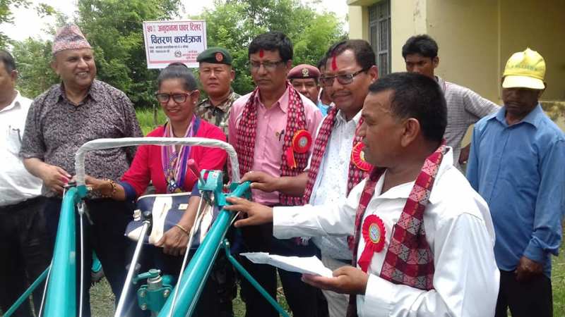 वाणगंगा नगरपालिकाले कृषकहरुलाई ५० प्रतिशत अनुदानमा खेत जोत्ने पावर टिलर मेसिन वितरण गरेको छ । १२ वटा पावर टिलर ५ नं प्रदेशका मुख्यमन्त्री शंकर पोख्रेलले कृषकहरुलाई वितरण गर्नुभएको हो । १ लाख ८० हजार पर्ने पावर टिलरमा कृषक सहकारी तथा समुहहरुवाट जम्मा ९० हजार लिई उक्त पावर टिलर मेसिन वितरण गरिएको हो । वितरण समारोहमा बोल्दै मुख्यमन्त्री पोख्रेलले कृषि क्षेत्रको विकासको लागि प्रदेश सरकारले प्रयाप्त बजेट विनियोजन गरेकोले व्यवसायिक रुपमा किसानहरुले काम गरि रोजगार सिर्जना गर्नु पर्ने बताउनुभयो ।