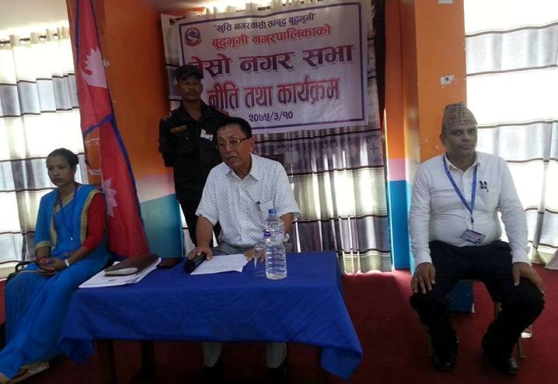 कार्यक्रममा प्रमुख प्रशासकीय अधिकृत मेघनाथ पाध्याले नगरसभा समयमै राखिएकोले आगामी वर्षमा नगरमा विकास काम गर्न सहजहुने र नगर विकासको लागि वास्तविक निती तथा कार्यक्रम वनाएर पारित भएको हुंदा नगर विकास दृत गतिमा हुने विश्वा व्यक्त गर्नुभयो ।