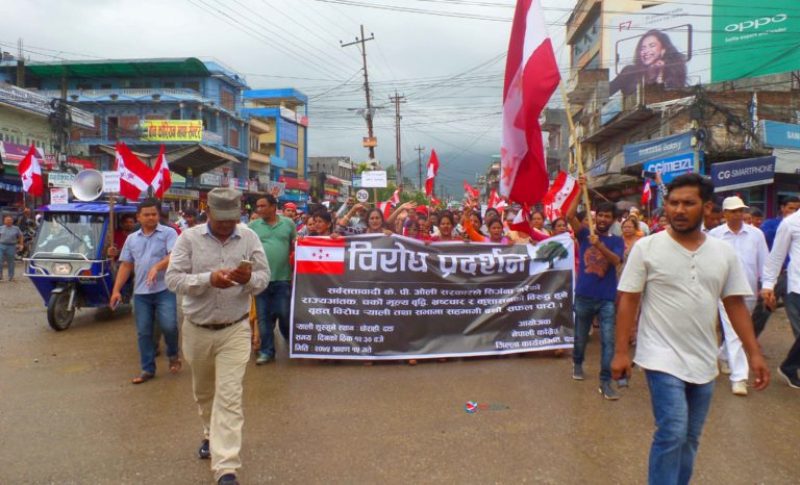 सरकारको क्रियाकलाप विरुद्ध असन्तुष्टि जाहेर गर्दै आएको प्रमुख प्रतिपक्षी दल नेपाली कांग्रेसले आफ्ना कार्यकर्ताहरु सडकमा उतारेको छ । केन्द्रिय कार्यक्रम अनुसार दाङमा पनि नेपाली काँग्रेसले सडकमा कार्यकर्ताहरु उतारेर सरकारलाई खबरदारी गरेको छ ।