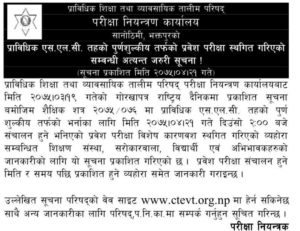 मायादेवी अनलाइन, कपिलवस्तु । प्राविधिक शिक्षा तथा व्यवसायिक तालिम परिषद् (सिटिइभिटी)ले आज गर्ने भनेको प्रवेश