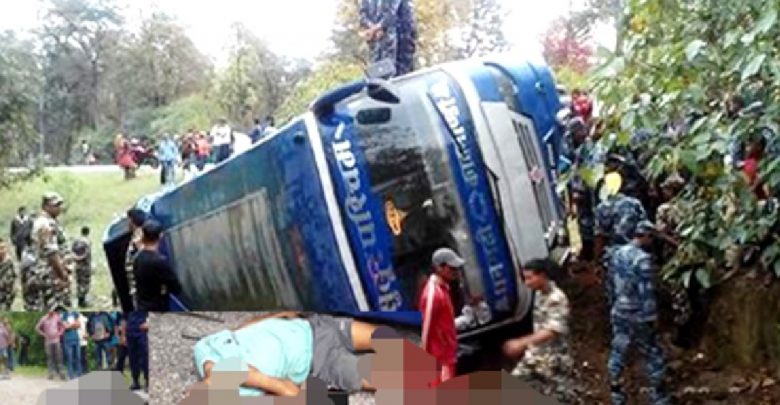 सुलिचौरबाट सिर्पका लागि छुटेको आशीर्वाद यातायात प्रालिको बा १ ख ५५२१ नम्बरको बस जुतुङखोलाको उकालो घुम्तीमा चिप्लिएर दुर्घटना हुँदा स्वर्गद्धारी नगरपालिका–५ सारी प्यूठानका २४ वर्षीय चालक नवराज आले र लुङ्ग्री गाउँपालिका–३, जुतुङखोलाका ११ महिने बालक नितेश विकको मृत्यु भएको प्रहरीले जनाएको छ ।