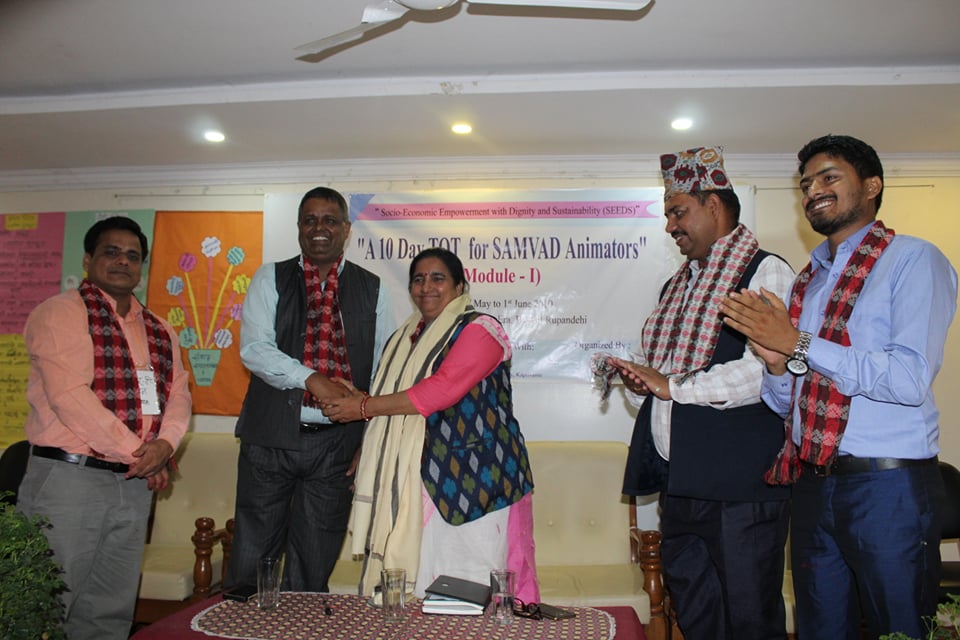 बुटवलमा सुरु भएको १० दिने मोडुल प्रशिक्षक प्रशिक्षण तालिमको आज समापन गरिएको छ । सिद्धार्थ सामाजिक विकास केन्द्र कपिलवस्तु तथा स्ट्रोम फाउण्डेसन नेपालको सहयोगमा सञ्चालित दिगो तथा मर्यादित सामाजिक आर्थिक शशक्तिकरण सिड्स कार्यक्रम अन्तरगत उक्त कार्यक्रम गरिएको हो । कार्यक्रममा बोल्दै प्रमुख अतिथी भूमि ब्यवस्था तथा सहकारी मन्त्री आरती पौडेलले सबैजना सकारात्मक विभेद लिएर अगाडी बढ्नुपर्नेमा जोड दिनुभयो । उहाले प्रदेश ५ लाई नमूना प्रदेश बनाउनको लागि सबै एकजुट हुनूपर्नेमा जोड दिनुभयो ।
