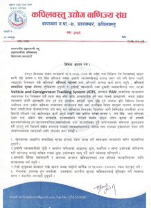 पत्रमा लेखिएको छ– “सवै श्रमिकको अनिवार्य प्यानमा दर्ता गरिनुपर्ने अन्यथा खर्च मान्य नहुने , अनिवार्य सामाजिक सुरक्षा कोषमा सूचिकरण हुनुपर्ने र उद्योगी व्यावसायी तथा ढुवानी व्यवसायीलाई लागु भएको Vehicle and Consignment Tracking System VCTS, अनिवार्य PAN ,सामाजिक सुरक्षाकोष लगायतका ऐन नियमहरु एकै पटक लागु गरेर जाँदा अव्यवहारिक हुने तथा त्यस्ता प्रावधानले समग्र उद्योग व्यावसाय क्षेत्रनै धारासायी बन्द हुँने एवं उपभोग्य वस्तुको मुल्य बृद्धि हु्ने अवस्था प्रति विभिन्न जिल्ला अवस्थित अन्य उद्योग बाणिज्य संघहरुसंग सरसल्लाह गर्दा यहाँ उल्लेखित विषय बस्तुहरु तत्काल सरकारले विना तयारी,विना योजना, निणर्य गरी लागु गर्न खोजिएका विगतका नियर्णहरु जस्तै सिण्डिकेट प्रणलीको अन्त्य विषादी परीक्षण तथा क्वारेन्टाइन जस्तै अपुरो तयारी यस आर्थिक वर्षको श्रावण १ गते देखि लागु गरिएको ऐनले गर्दा अहिले पनि सरकारले पुनरावलोकन गर्नुपर्ने स्थिति आउन नदिन सुरुमा यो प्रणाली महानगरपालिका, उप–महानगरपालिका, नगरपालिका तथा गाउपालिका हुदैँ कार्यन्यवनको सफलता मुल्याङ्गकन गदैँ आउनु पर्ने निश्कर्ष सहित हाललाइ राज्यले व्यावसायिहरुलाई तालिम तथा राज्यका पूर्वाधारहरु तयार गरी कार्यान्यवयनमा ल्याउनको लागि जोडदार माग गर्दछौँ ।”
