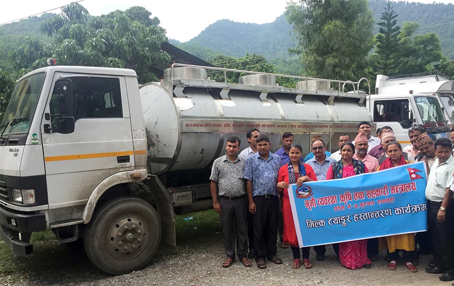 मन्त्रालयको ५० प्रतिशत अनुदानमा बाँकी रकम थपेर सहकारीहरुले आफैं ट्यांकर खरिद गरेका छन् । मन्त्री आरती पौडेलले ९ जिल्लाका १२ जना किसान तथा सहकारीका प्रतिनिधिलाई शुक्रबार मन्त्रालयमा आयोजित एक कार्यक्रममा ट्यांकरको ब्लुबुक र चाबी प्रदान गरिन् ।