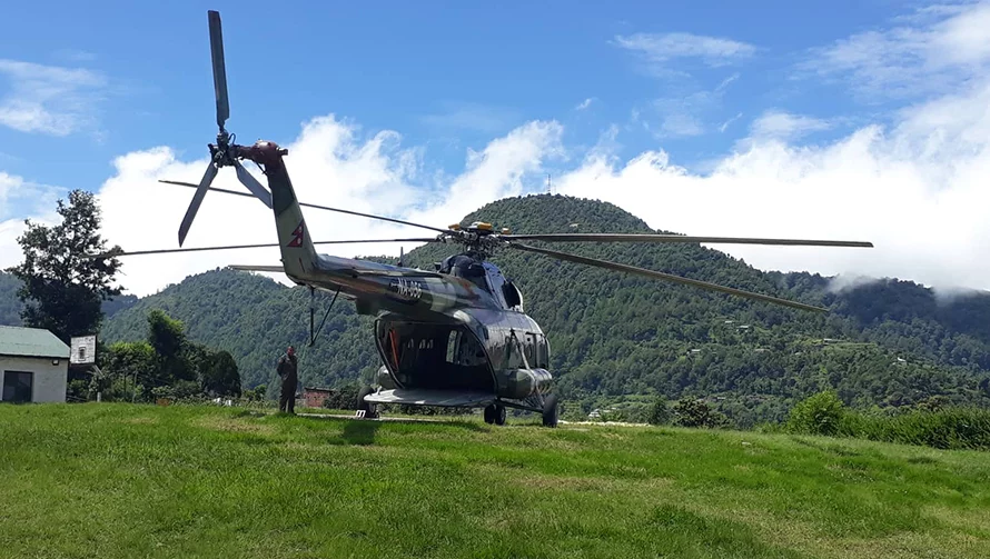 गुल्मीको पहिरो प्रभावित क्षेत्रमा हेलिकोप्टरबाट पुग्यो खाद्यान्न