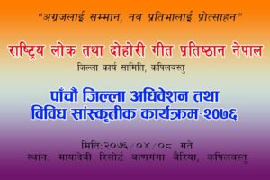 कपिलवस्तु । कपिलवस्तु जिल्लामा बिगत दश बर्षदेखी कलाकारिता क्षेत्रमा क्रियाशिल राष्ट्रिय लोक तथा दोहोरी प्रतिष्ठान