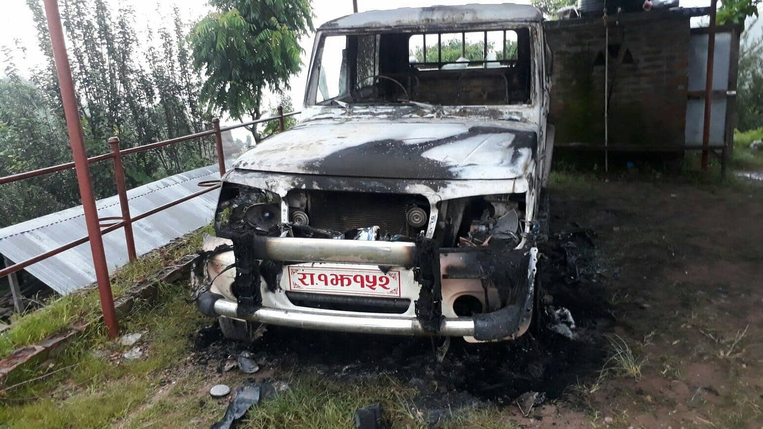 अज्ञात समुहले लगायो बंगलाचुली गाउँपालिका अध्यक्ष चढ्ने गाडीमा आगो
