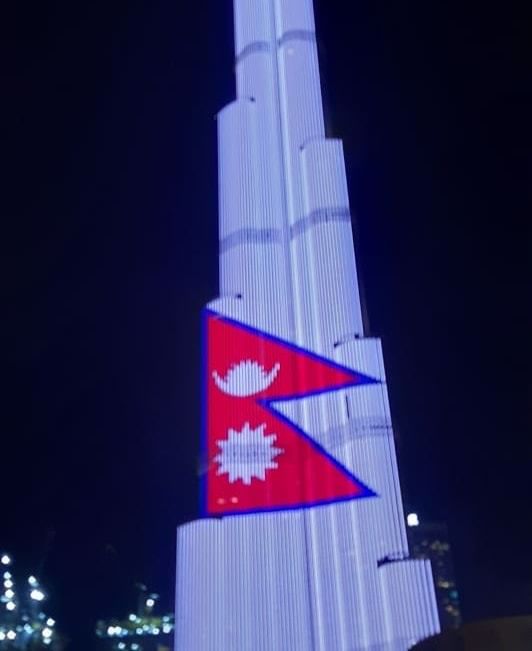 विश्वकै अग्लो भवन बुर्ज खालिफामा नेपालको राष्ट्रिय झण्डा फरफराएको छ । नेपालको संविधान दिवसको अवसरमा बुर्ज खालिफामा नेपाली झण्डा फरफराइएको हो ।