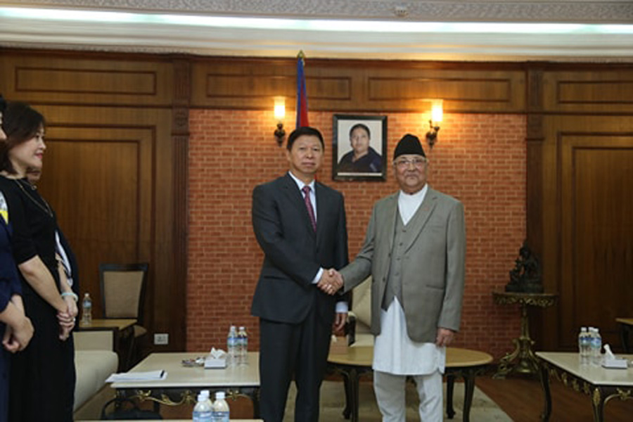 प्रधानमन्त्री केपी शर्मा ओलीसँग नेपाल भ्रमणमा रहेको चिनियाँ कम्युनिष्ट पार्टीका अन्तर्राष्ट्रिय विभाग प्रमुख सोङ पाओ नेतृत्वको प्रमण्डलले भेट गरेको छ । प्रधानमन्त्री निवास बालुवाटारमा सोमबार भएको भेटका अवसरमा चिनियाँ सोङ पाओले चीनले नेपालको समृद्धिको यात्रामा सघाउने विश्वास व्यक्त गरे ।