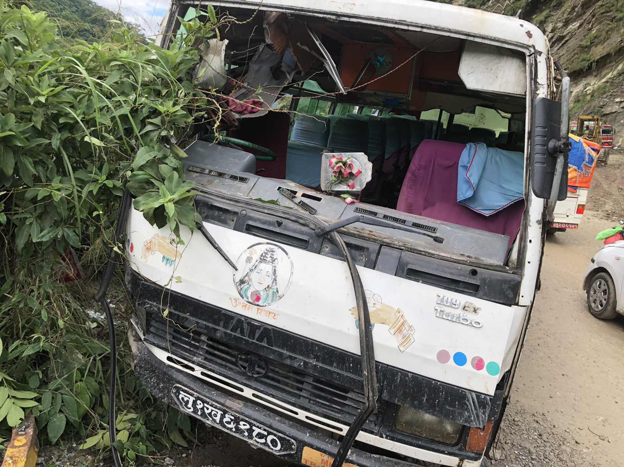 पाल्पाबाट बुटवल तर्फ जाँदै गरेको लु१ ख ६१८१ नम्बरको बसमा तिनाउँ गाउँपालिका ३ हेडबक्स नजिकै माथिबाट खसेको ढुंगाले लाग्दा बसमा सवार ५ जना घाइते भएका छन् ।