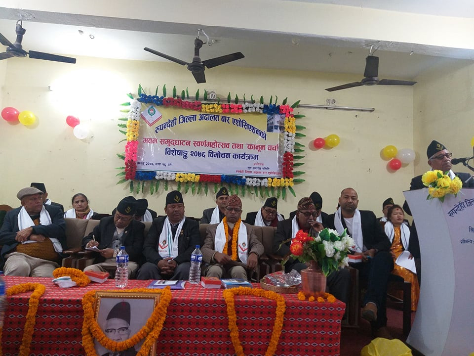 कार्यक्रममा रुपन्देही जिल्ला अदालत बार भवन उद्घाटन तथा कानुनी चर्चा स्मारिका विमोचन गरिएको थियो।