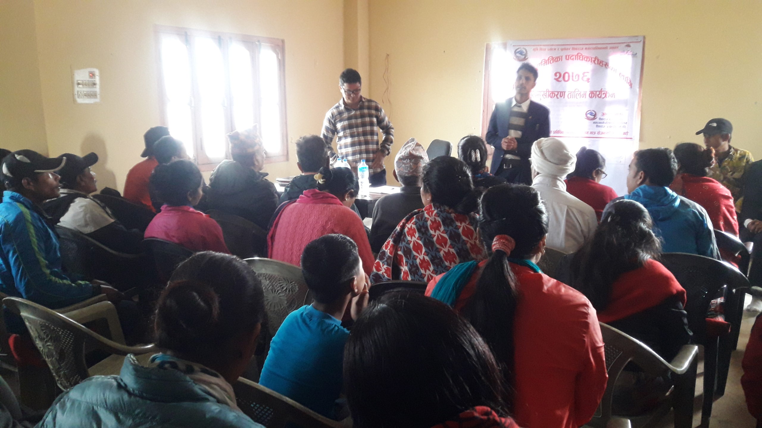 अभिमुखिकरण कार्यक्रमको सहजीकरण गर्दै के.सी.ले उपभोक्तालाई गुणस्तरिय कामसंगै आवश्यक कागजात कसरी चुस्तदुरस्त राख्न सकिन्छ भन्नेबारे सिकाउनुभएको थियो ।