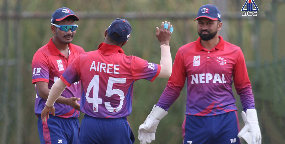 एसीसी इस्टर्न रिजन टि–२० क्रिकेटमा नेपालले पहिलो जित निकालेको छ। बुधबार बिहान भएको खेलमा नेपालले आयोजक थाइल्यान्डलाई ९ विकेटले पराजित गरेको हो।थाइल्यान्डले दिएको ६७ रनको लक्ष्य नेपालले ५।३ ओभरमै १ विकेट गुमाएर भट्टायो। नेपालका लागि ओपनर कुशल मल्लले विष्फोटक ब्याटिङ गरे। उनले १८ बलमा ३६ रन जोडे। त्यस्तै पवन सर्राफले १० बलमा २७ रन बनाए भने ओपनिङमा आएका पारस खड्काले ९ रन बनाए। उनी नोफोन सेनामोन्त्रीको बलमा बोल्ड आउट भएका थिए।