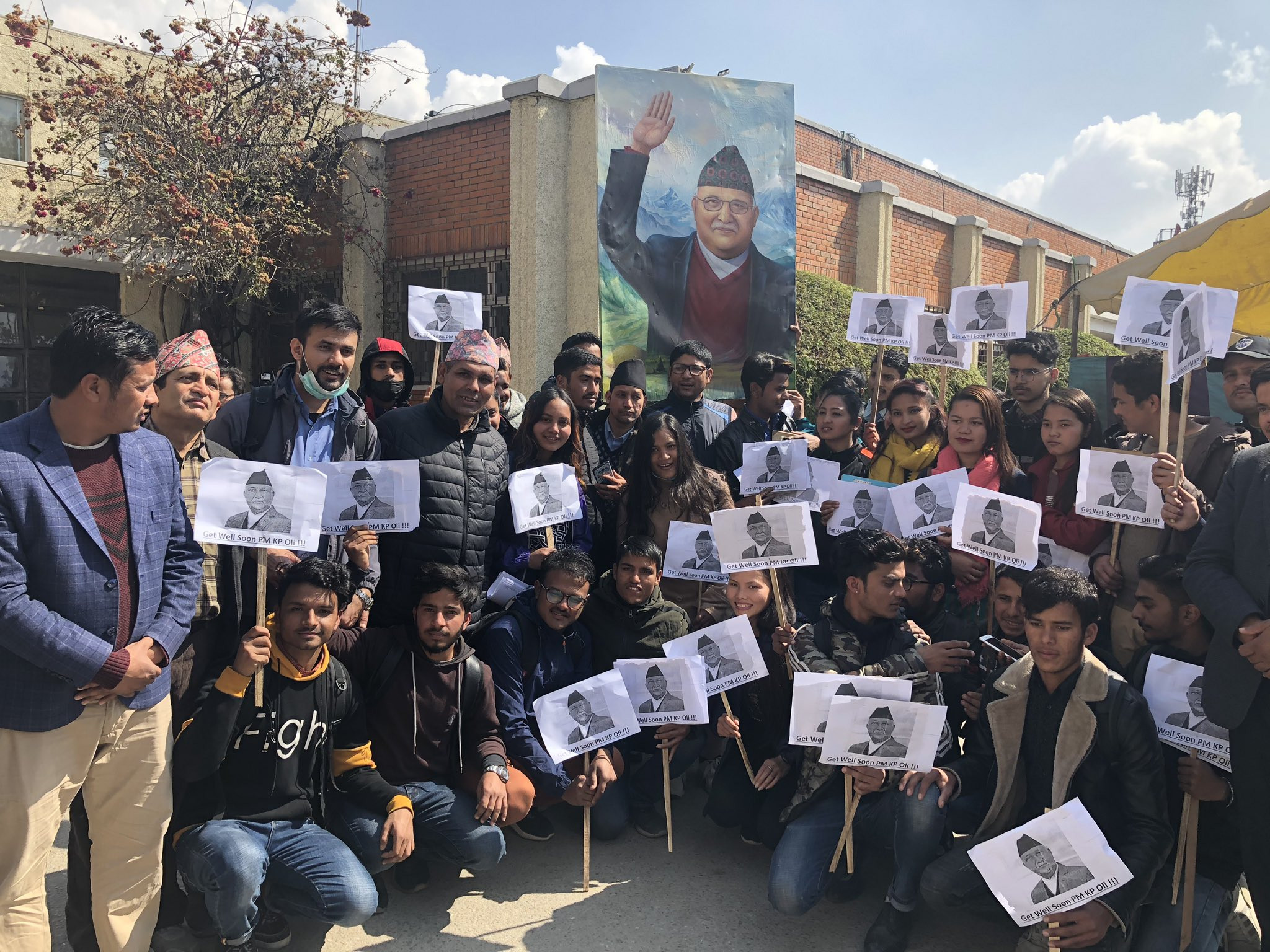 अस्पतालभित्र शल्यक्रिया भइरहँदा बाहिर नेकपाका नेता कार्यकर्ता, शुभचिन्तक र सर्वसाधरण प्रधानमन्त्रीको सफल शल्यक्रिया र स्वास्थ्यलाभको कामना गरिरहेका छन्। प्रधानमन्त्रीको तस्बिर अंकित प्लेकार्ड प्रदर्शन गरिएका छन्।