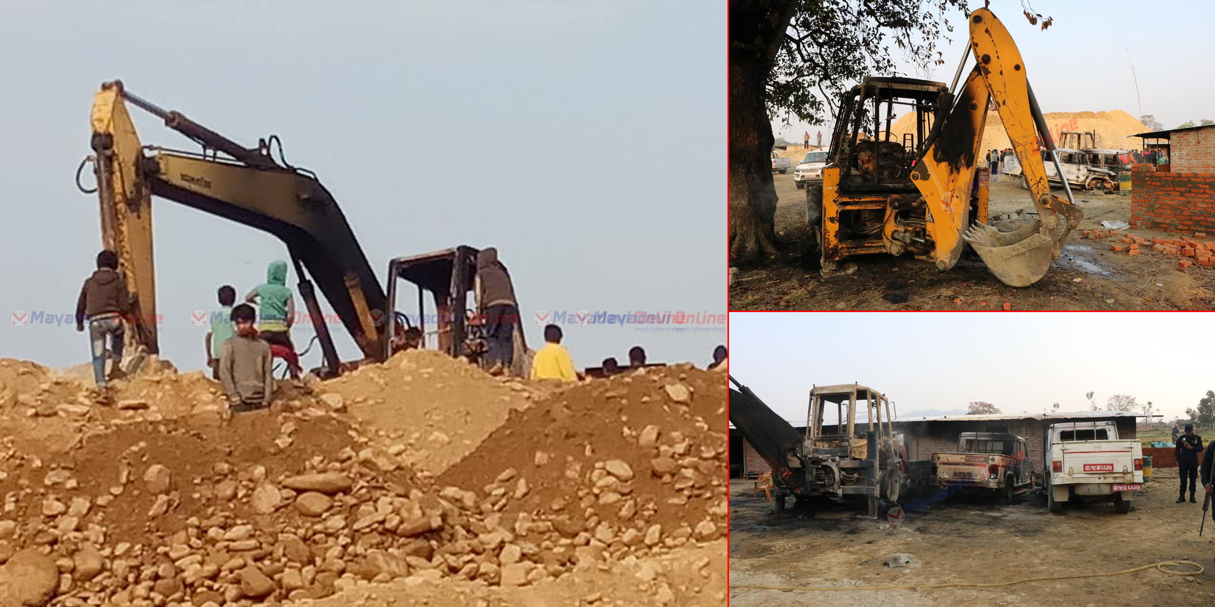 रोकी राखिएको २ वटा स्काभेटर, २ वटा जेसिबी र २ वटा पिकअप भ्यानमा आगजनी गरिएको हो। घटनास्थल नेकपाका अति प्रभावित ठाउँ हो । कपिलवस्तुको शिवराज नगरपालिका १ तुरुन्तपुरमा १ वटा स्काभेटर, विजयनगर गाउँपालिका २ लोहरौलामा २ जेसिबी र २ वटा महेन्द्रा पिकअप गाडीमा आगजनी गरिएको थियो । आगजनी भएका उक्त सामग्री हुलाकी मार्ग निर्माण गर्ने जिम्मा लिएको शर्मा एण्ड शर्मा कम्पनीको रहेको प्रहरीले जनाएको छ ।
