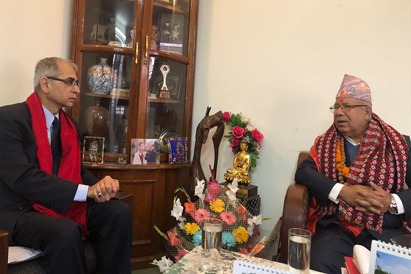 नेपालका लागि भारतीय राजदूत विनयमोहन क्वात्राले सत्तारुढ दल नेकपाका वरिष्ठ नेता माधवकुमार नेपालसँग शिष्टाचार भेटवार्ता गरेका छन् । नेपाल निवास कोटेश्वरमा भएको भेटमा नेपाल र भारतको हितका बारेमा कुराकानी भएको नेता नेपालका सहयोगी मोहन गौतमले जानकारी दिए । हिजो मात्रै राष्ट्रपति विद्यादेवि भण्डारीलाई ओहोदाको प्रमाणपत्र बुझाएका क्वात्राले त्यस लगत्तै परराष्ट्रमन्त्री प्रदीप ज्ञवालीसँग भेटवार्ता गरेका थिए ।