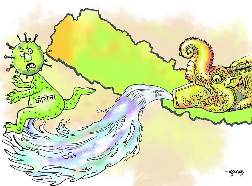 यसैबीच संक्रमण नफैलियोस् भनेर विदेशमा समेत हात नमिलाउने, नमस्कार गर्ने प्रचलनलाई प्राथमिकता दिन थालिएको छ, जसलाई पूर्वीय सभ्यतासँग जोडेर हेर्ने गरिन्छ। यसको वैज्ञानिक आधार र तर्क पनि बलियो देखिन्छ। यो पंक्तिकारले नमस्कारजस्तै अर्को पूर्वीय परम्परागत संस्कार पनि कोरोनाबाट बच्ने अर्काे बलियो उपाय ठानेको छ। त्यो हो– हात पानीमा बारम्बार खेलाइरहनु। हामी नेपाली हातले खाना खाने भएकाले खानुअघि र पछि अनिवार्य हात धुने गर्छाैं। तर विदेशीहरू खाना खान चम्चा र काँटा वा चोपिस्टिक आदि प्रयोग गर्छन्। त्यस्तै धेरैजसो विदेशी भाँडाकुँडा पनि मेसिनले माझ्छन् भने लुगा धुँदा वासिङ मेसिन प्रयोग गर्छन्। अनि शौचालयमा समेत बढी पानीभन्दा पेपर प्रयोग गर्छन्। तर हामी नेपाली भाँडा माझ्न लुगा धुन बढी हातकै प्रयोग गर्छौं र प्रशस्त मात्रामा साबुन–पानी खेलाउँछौं। यस्तै नेपालीले मासु राम्रोसँग पाक्ने गरी वा प्रेसर कुकरमा पकाउने भएकाले त्यसमा रहेका जीवाणु/कीटाणु बच्ने सम्भावना हुँदैन।