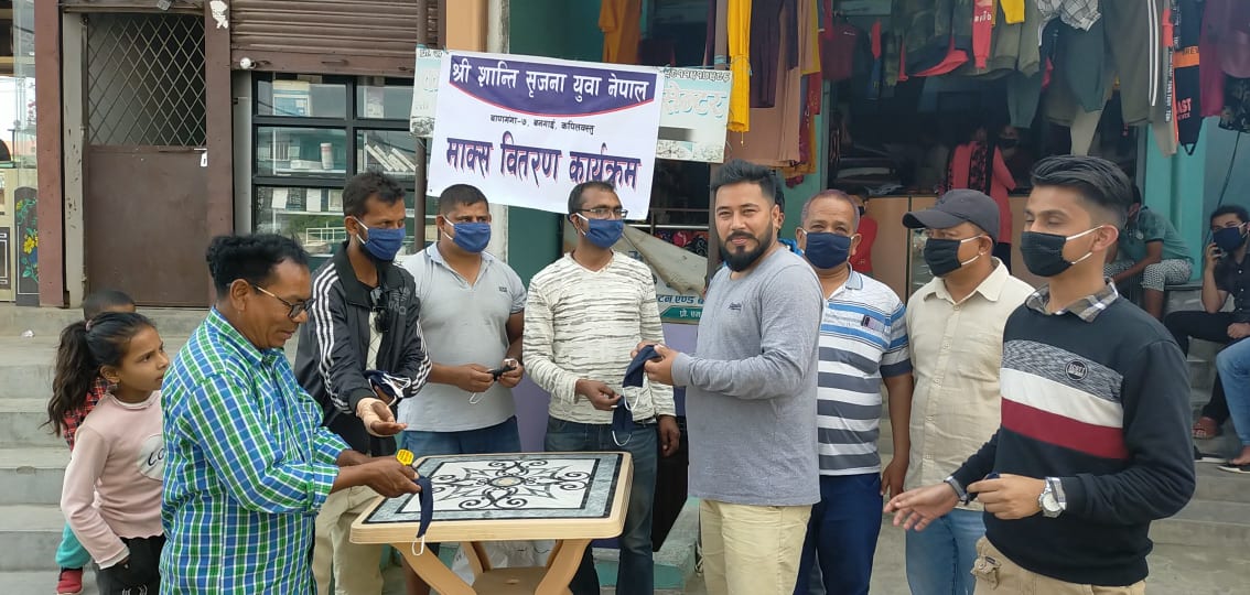उद्योग बाणिज्य संघ कपिलवस्तुका वरिष्ठ उपाध्यक्ष रुक बहादुर भुषाल र क्लवका वरिष्ठ उपाध्यक्ष अशोक वाग्ले लगायतको सहभागितामा मास्क वितरण गरिएको क्लवका अध्यक्ष युग बहादुर केसीले जानकारी दिनुभयो ।