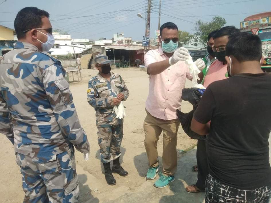 कृष्णनगर नगरपालिकामा सिमा क्षेत्रमा खटिएका सुरक्षा निकाए तथा सर्वसाधारणलाई निशुल्क मास्क र पन्जा वितरण गरिएको छ ।