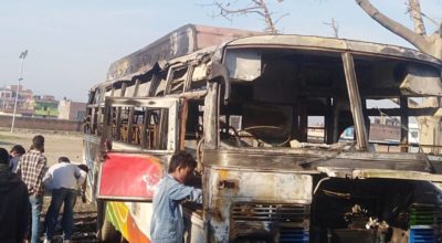 दाङ । गएराति अज्ञात समूहले तुलसीपुरमा एउटा बसमा आगजनी गरेको छ । तुलसीपुरको बसपार्कमा रहेको