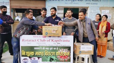 मायादेवी अनलाइन, चन्द्रौटा । रोट्याक क्लब अफ कपिलवस्तुले जिल्लाको चन्द्रौटामा निःशुल्क माक्स वितरण गरेको छ
