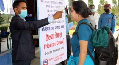 बाँके । नेपालगञ्ज विमानस्थलमा कोरोना भाइरसलाई मध्यनजर गर्दै हेल्थ डेस्क सञ्चालनमा आएको छ । कोरोनाको