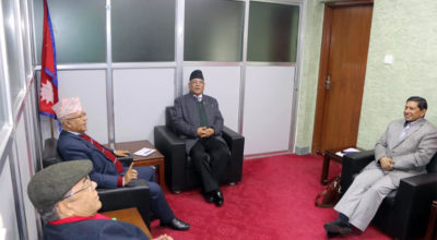 काठमाण्डौँ । राष्ट्रपति विद्यादेवी भण्डारी र प्रधानमन्त्री केपीशर्मा ओलीबीच भेटवार्ता भएको छ। बिहीबार साँझ शितल