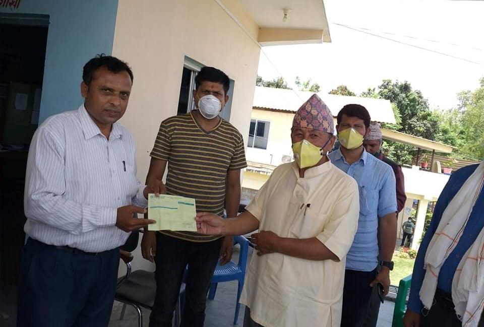 नेपाली कांग्रेस बुद्धभूमि नगर समितिका सभापति माधव दोमासेको नेतृत्वमा गएको टोलीले बुद्धभूमि नगरपालिकाका नगर प्रमुख केशव कुमार श्रेष्ठलाई बैंकमा जम्मा गरेको ५१ हजार रकमको बैंक भौचर प्रदान गरेका हुन् ।